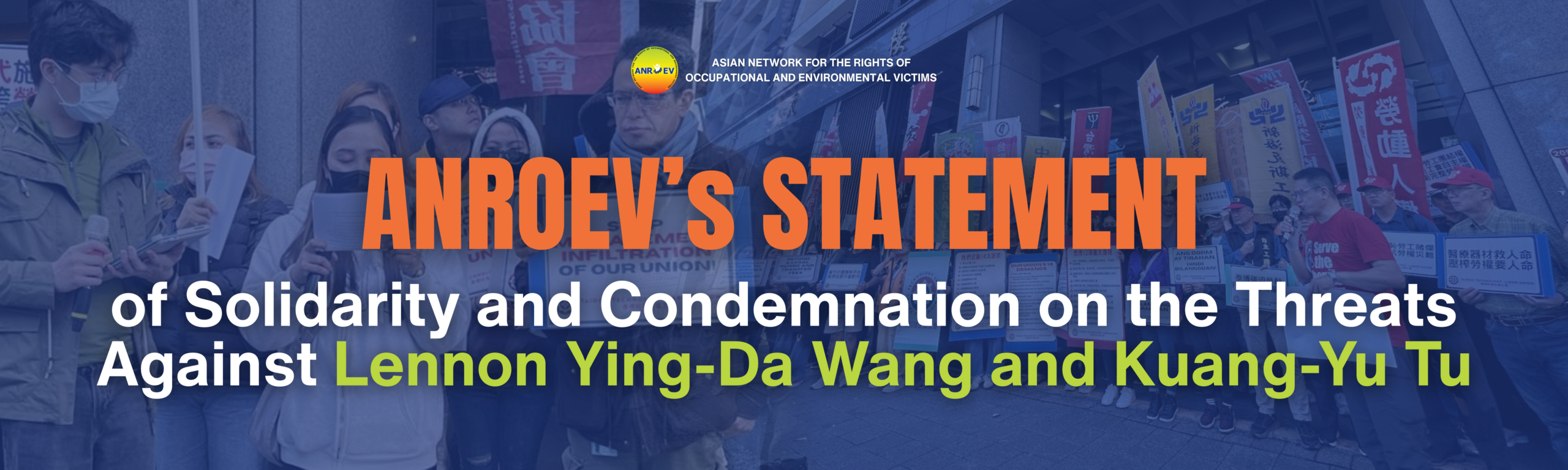 The Asian Network for the Rights of Occupational and Environmental Victims (ANROEV) strongly condemns the threats and planned acts of violence against Lennon Ying-Da Wang, Director of Policies on Migrant Workers at the Serve the People Association (SPA), and his colleague, Kuang-Yu Tu. SPA, an independent organization in Taiwan, has long been committed to advancing […]
