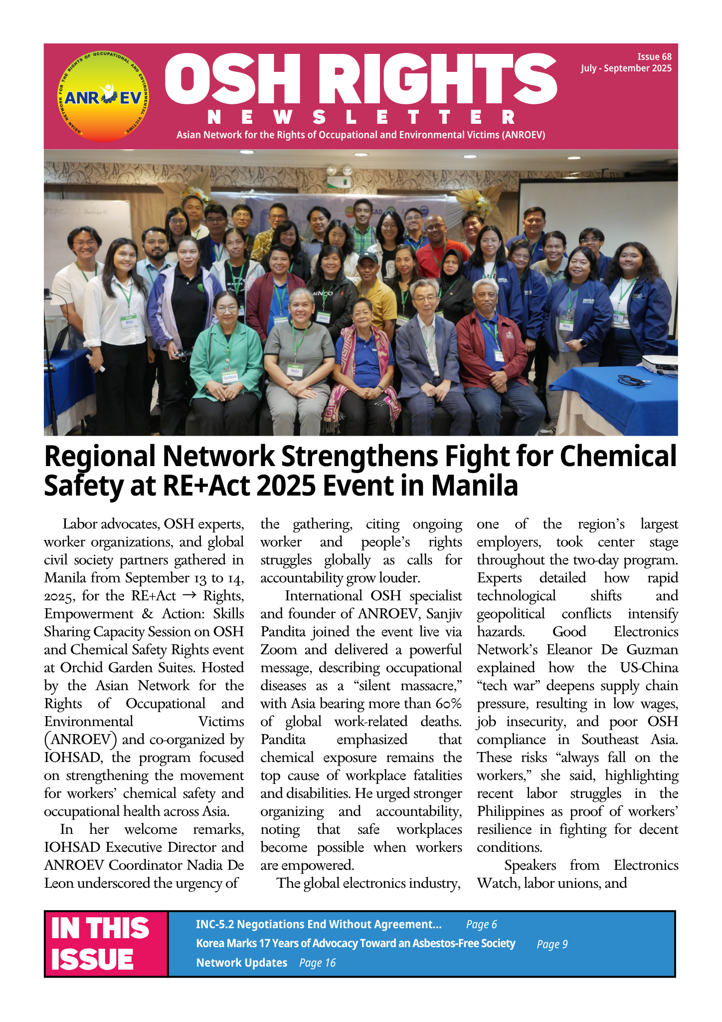 July-September 2025 Issue Contents Regional Network Strengthens Fight for Chemical Safety at RE+Act 2025 Event in Manila South Asia Launches First-Ever Occupational Disease Diagnosis Training in Kathmandu THAILAND & PRTR LAW: One more step toward PRTR implementation in Thailand Korea–Japan Activists Conclude Two-Week Protest Against Fukushima Nuclear Wastewater Dumping INC-5.2 Negotiations End Without Agreement, Delegates […]